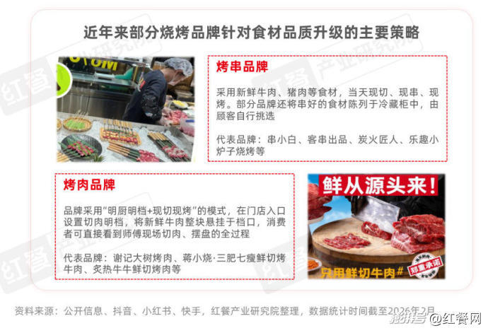据红餐产业研究院“2026年餐饮消费大调查”,烧烤消费者在选择餐厅时,“食材品质与新鲜度”位列关键考量因素的前四位。为了迎合消费者对新鲜、健康食材不断攀升的需求,不少烧烤品牌围绕食材的升级首先聚焦在“鲜”上。