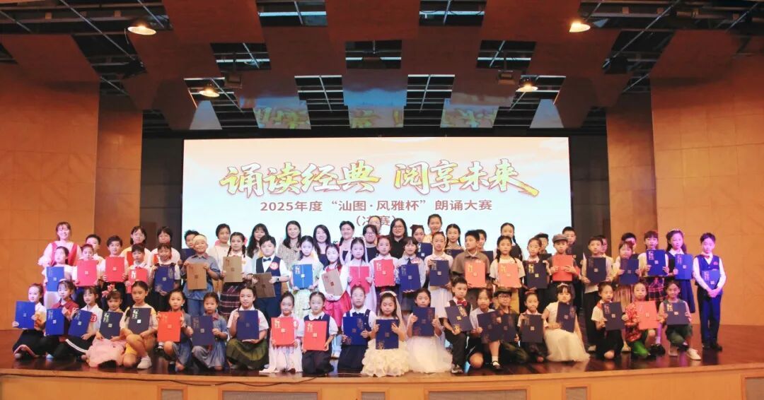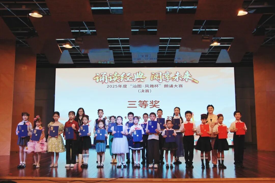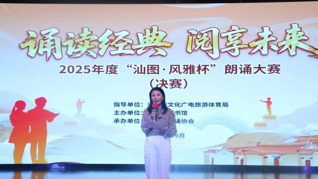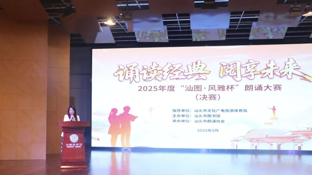 由汕头市文化广电旅游体育局指导、汕头市图书馆主办、汕头市朗诵协会承办的2025年度“汕图·风雅杯”朗诵大赛于2025年8月14日至9月21日举行。大赛以“诵读经典,阅享未来”为主题,通过朗诵经典现代文学作品,让更多人感受经典的魅力,激发读者对阅读的热爱,传承和弘扬优秀传统文化,发现、培养一批高水平的朗诵艺术人才,同时让少年读者在诵读经典的过程中体验到阅读的快乐。大赛决赛于9月21日下午圆满落幕。